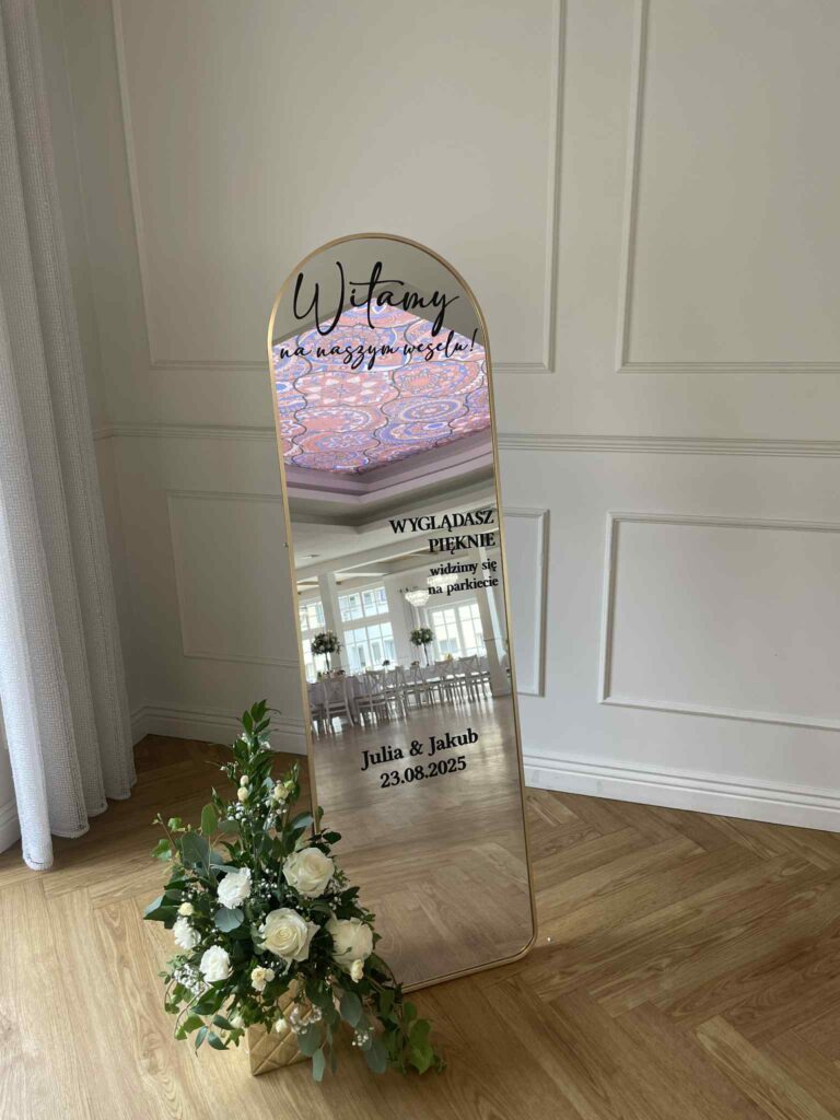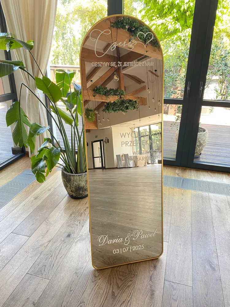 Lustro jest w pełni personalizowane pod konkretną imprezę - ozdabiamy je tematycznymi napisami, dzięki czemu idealnie wpisuje się w klimat wydarzenia: wesela, urodzin czy imprezy firmowej.