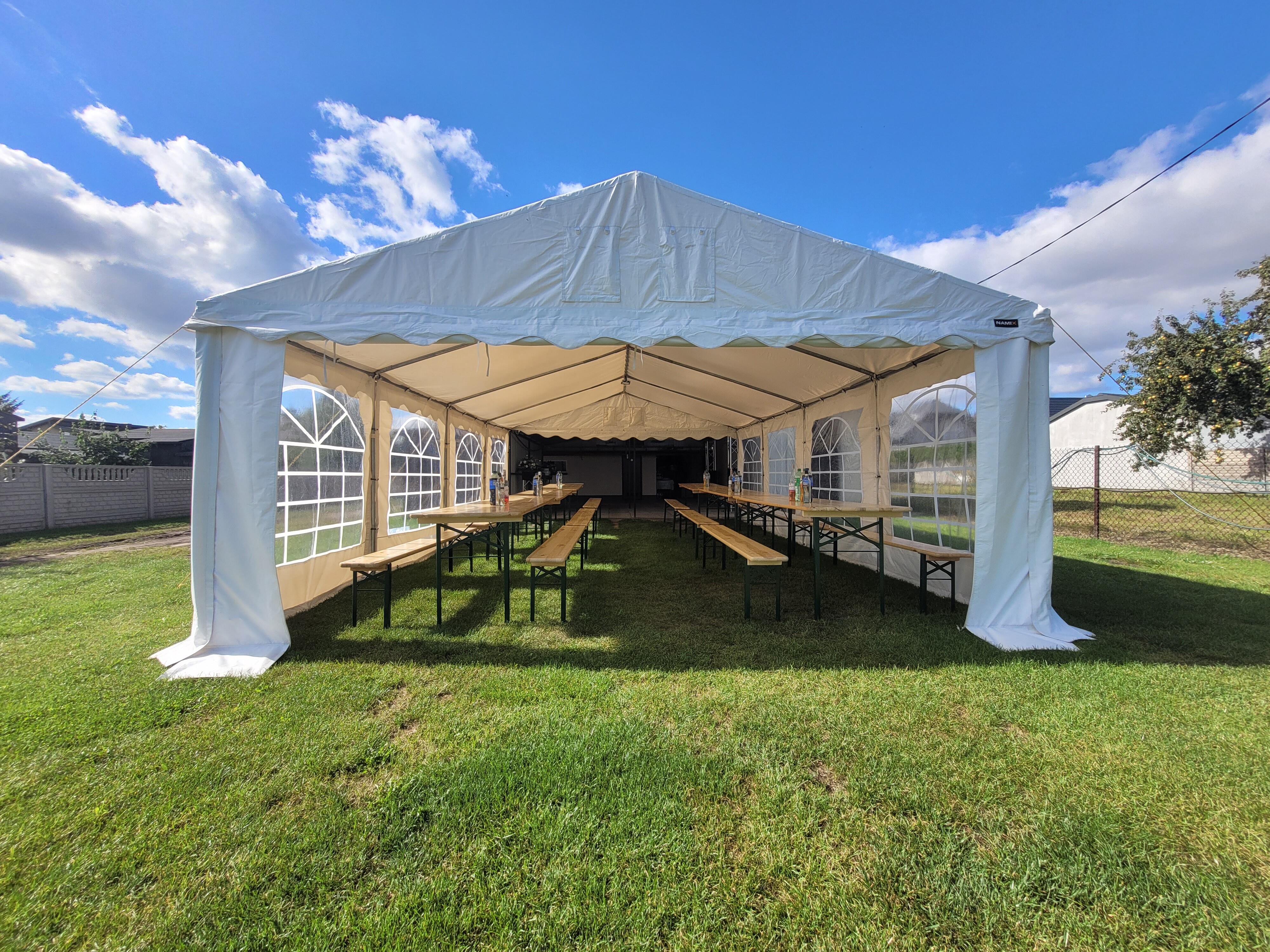 Namioty eventowe na imprezy domowe np. w ogrodzie, chrzciny, komunie, osiemnaste urodziny, imieniny, małe wesela, bankiet, spotkania integracyjne, wieczory panieńskie, kawalerskie i inne.