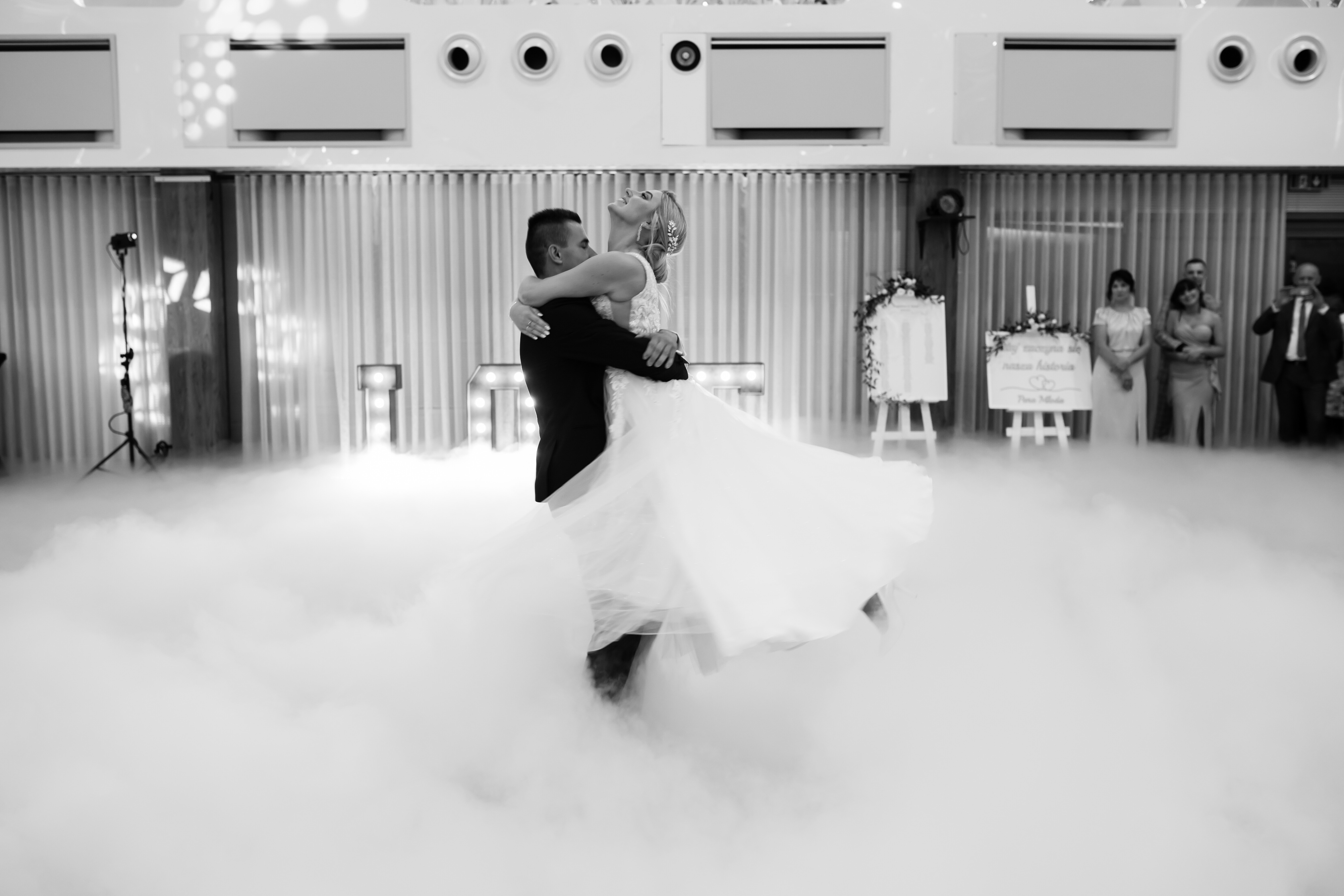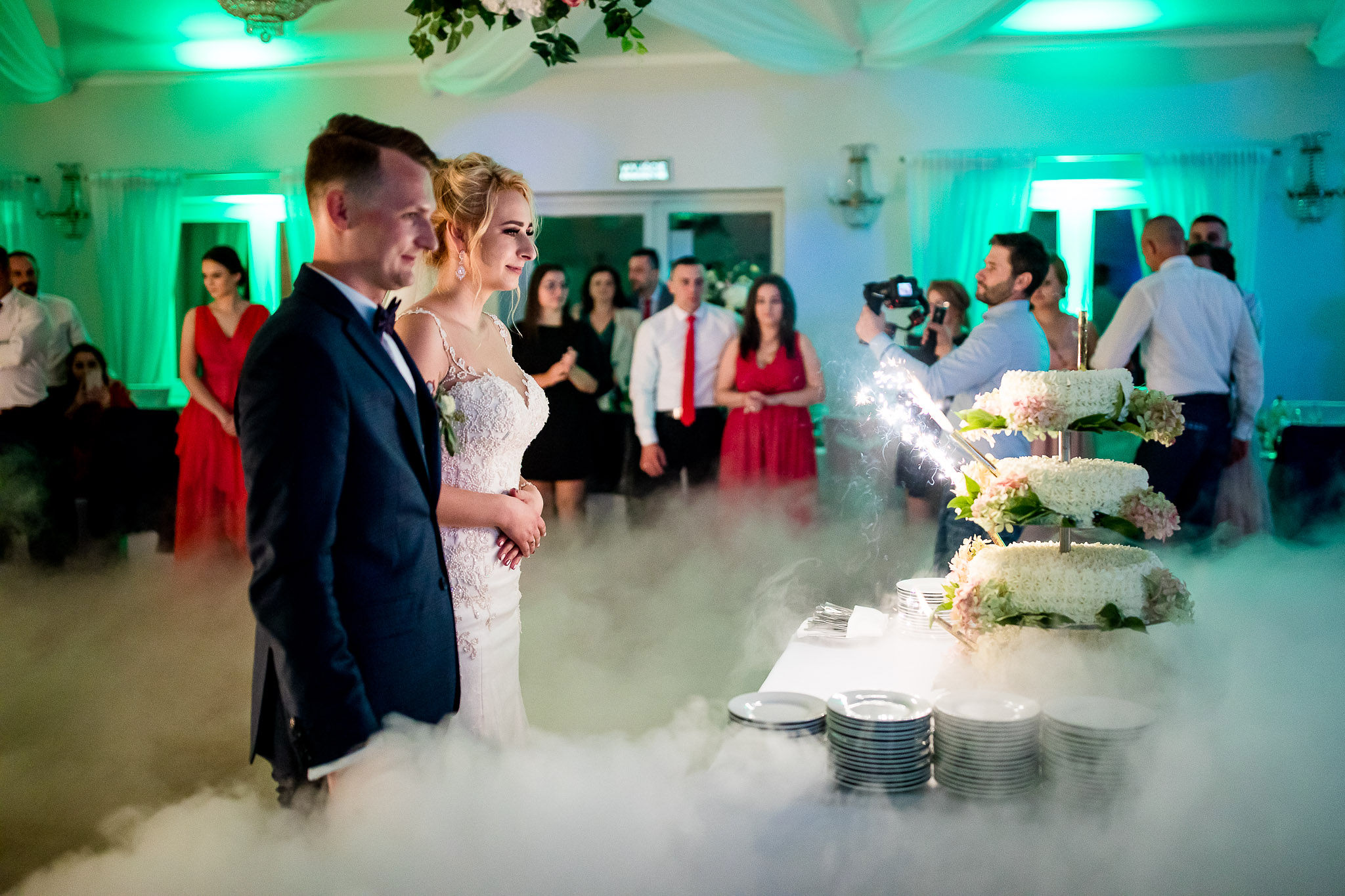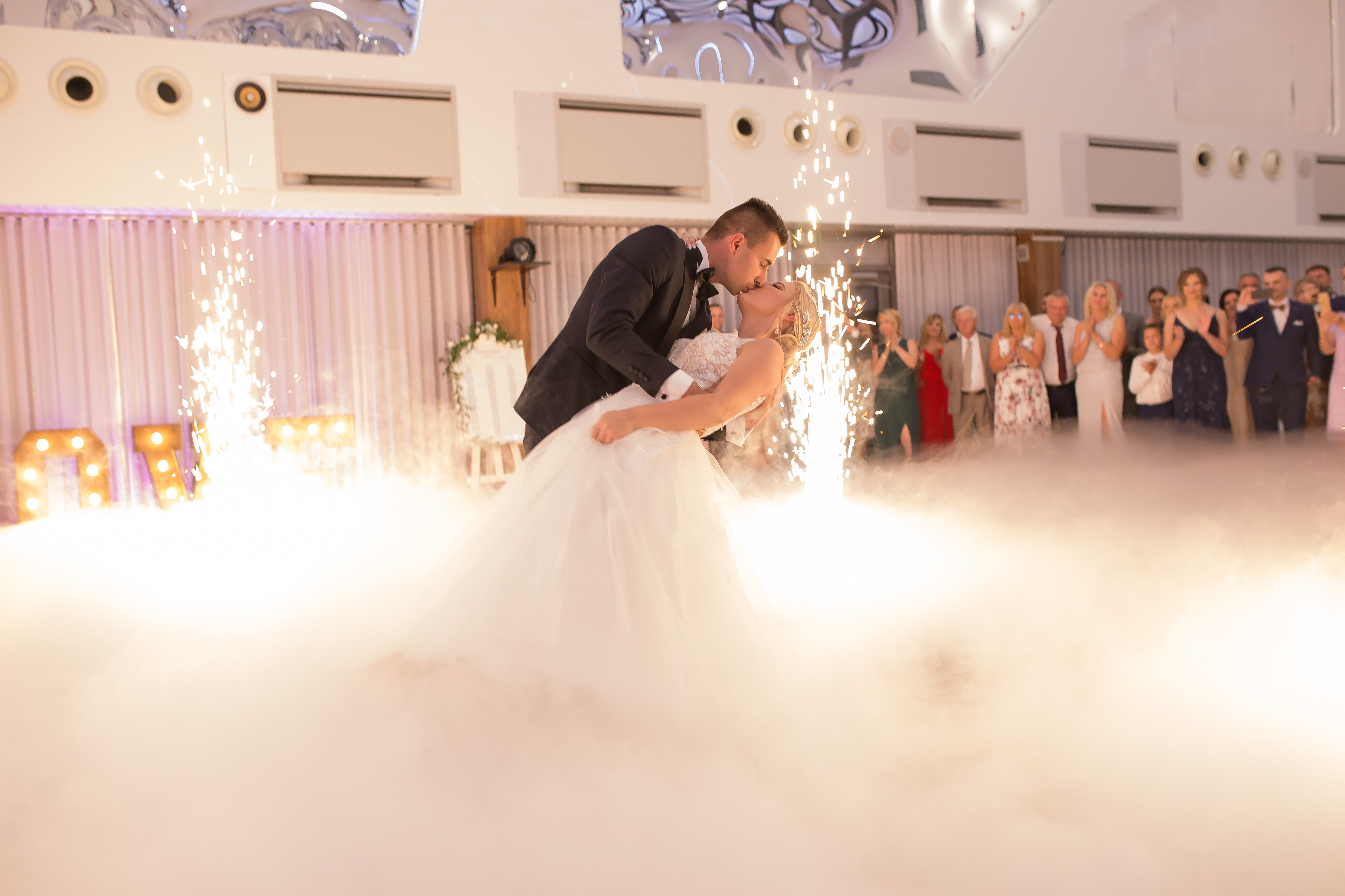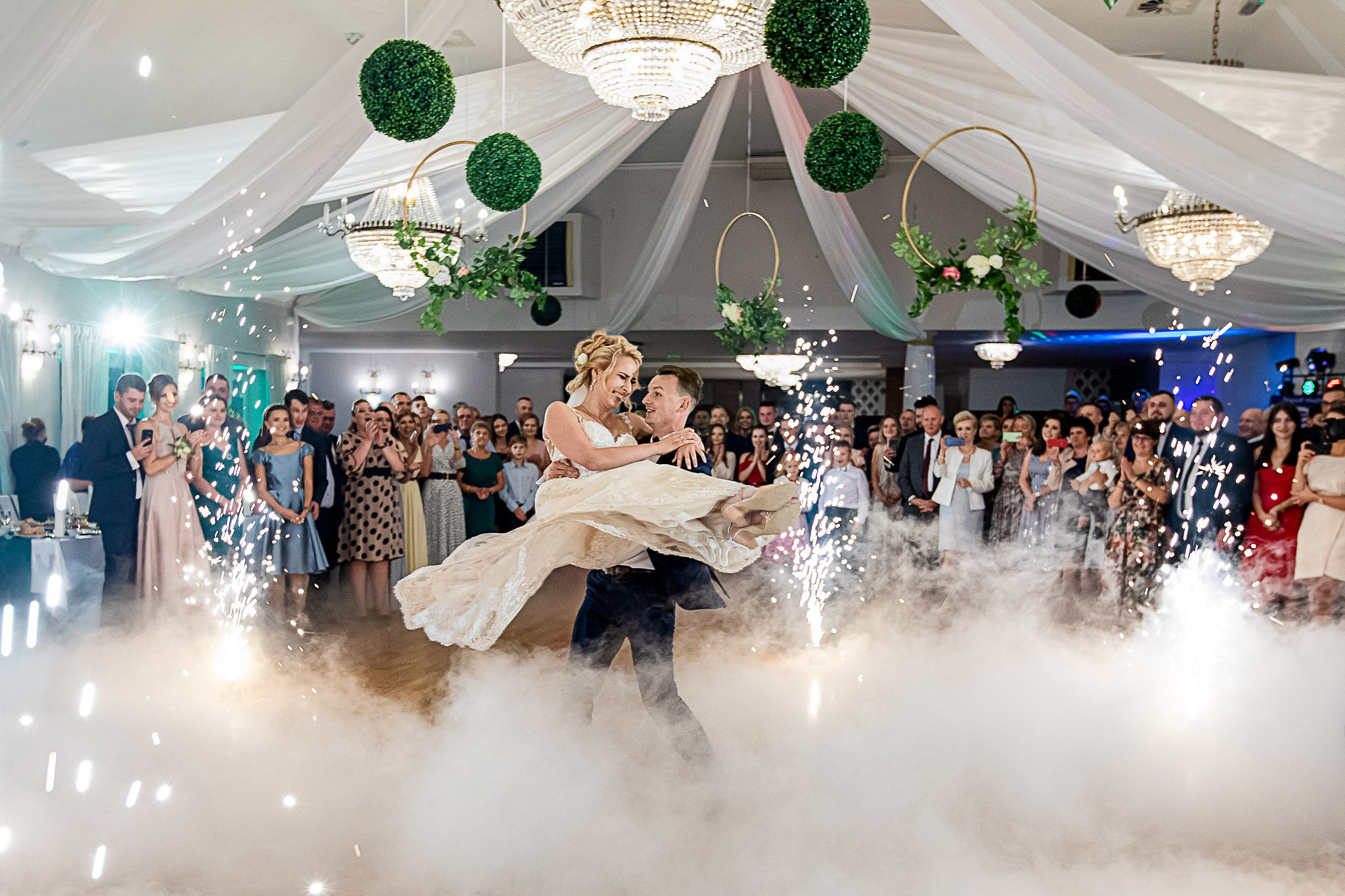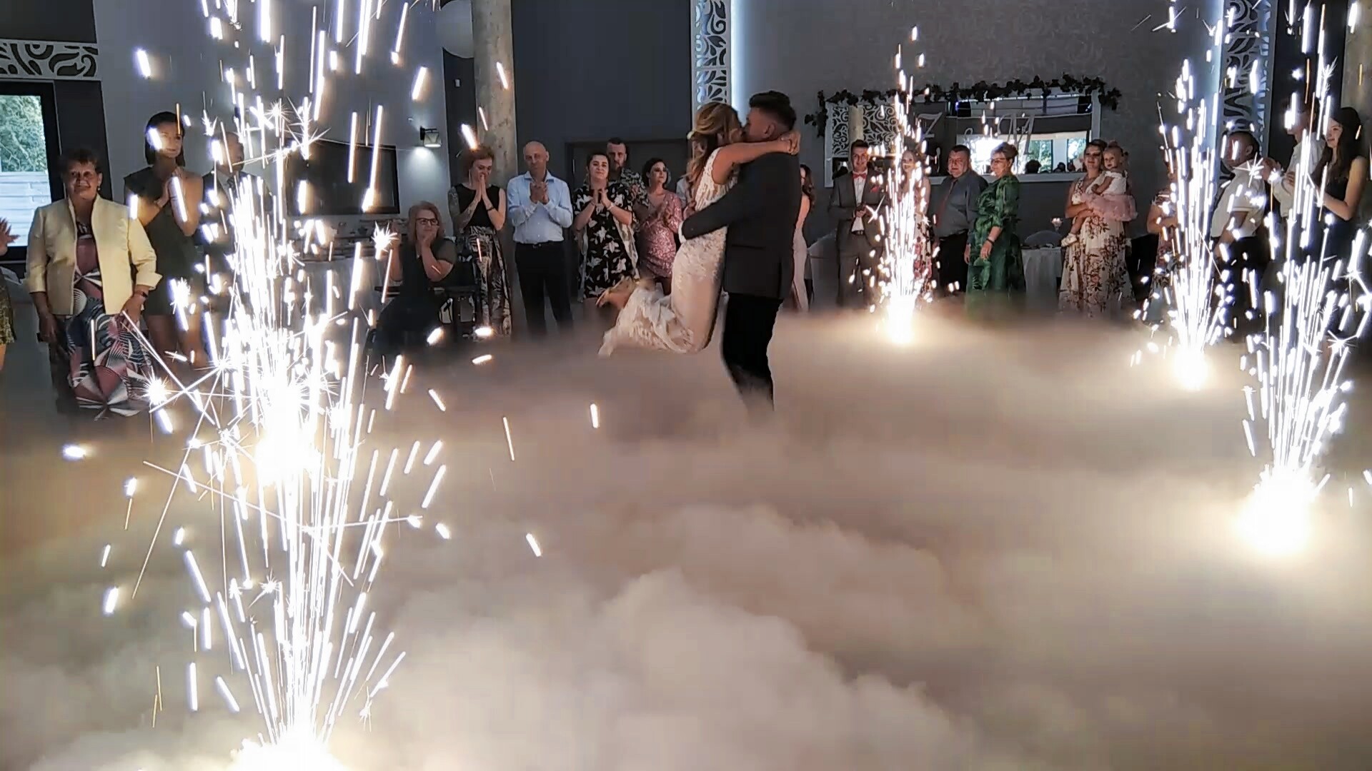 Posiadam wytwornicę ciężkiego dymu. Jest on szczególnie polecany przy pierwszym tańcu. Nie tylko sprawi, że Para Młoda będzie tańczyć jak w obłokach, ale również zamaskuje ewentualne błędy w choreografii, które mogą pojawić się w wyniku stresu. Ciężki dym sprawdzi się idealnie również w momencie krojenia tortu czy też podczas romantycznego tańca, kiedy każdy z gości będzie trzymał w dłoni świece lub zimne ognie. Efekt będzie niezapomniany! Moja maszyna do swojego działania potrzebuje suchego lodu oraz wody. Efekt ciężkiego dymu może trwać do 5 minut.