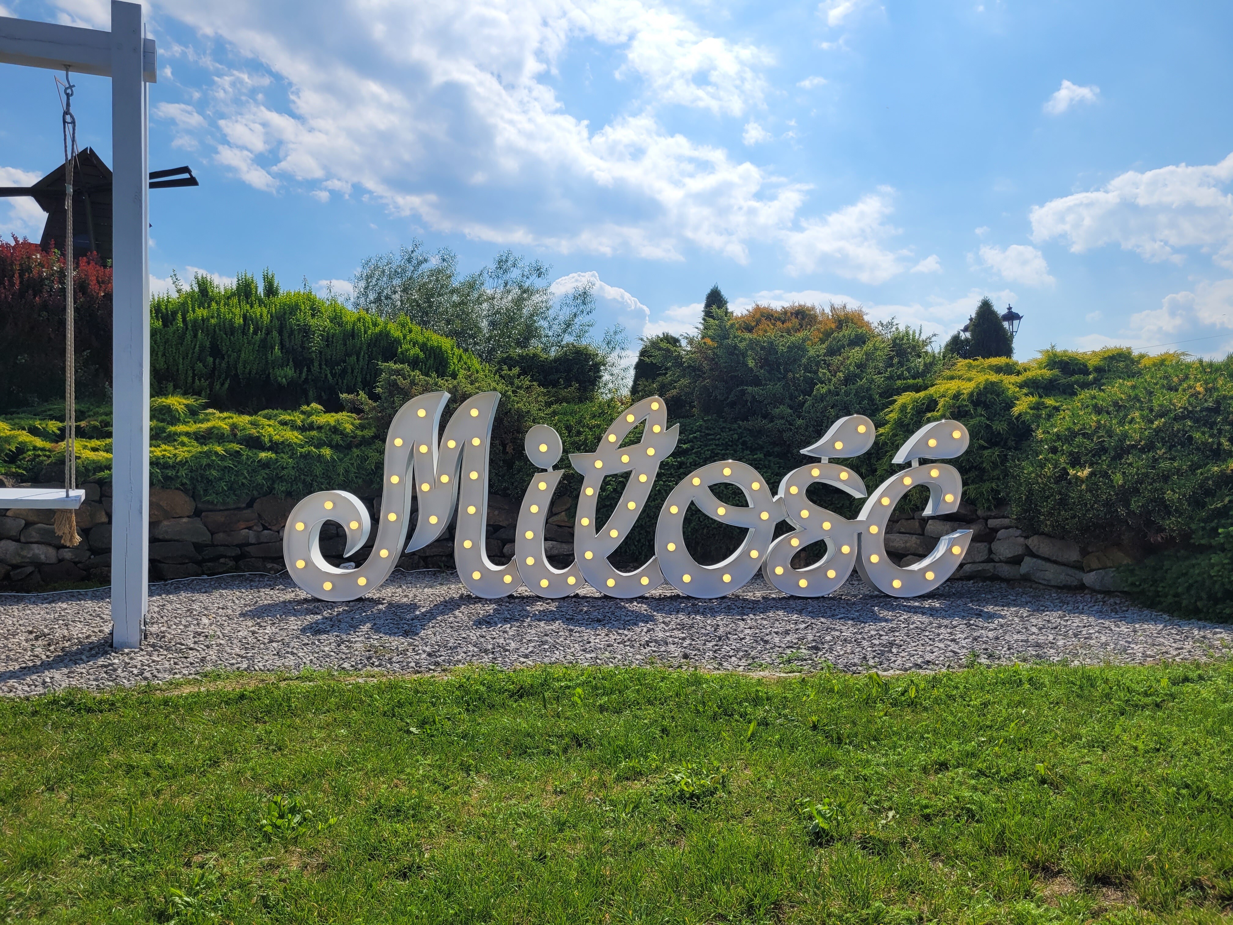 Napis rozpromienia twarze i pięknie się prezentuje. Posiadam również agregat prądotwórczy, który pozwala na obecność napisu na sesji zdjęciowej z dala od zabudowań.